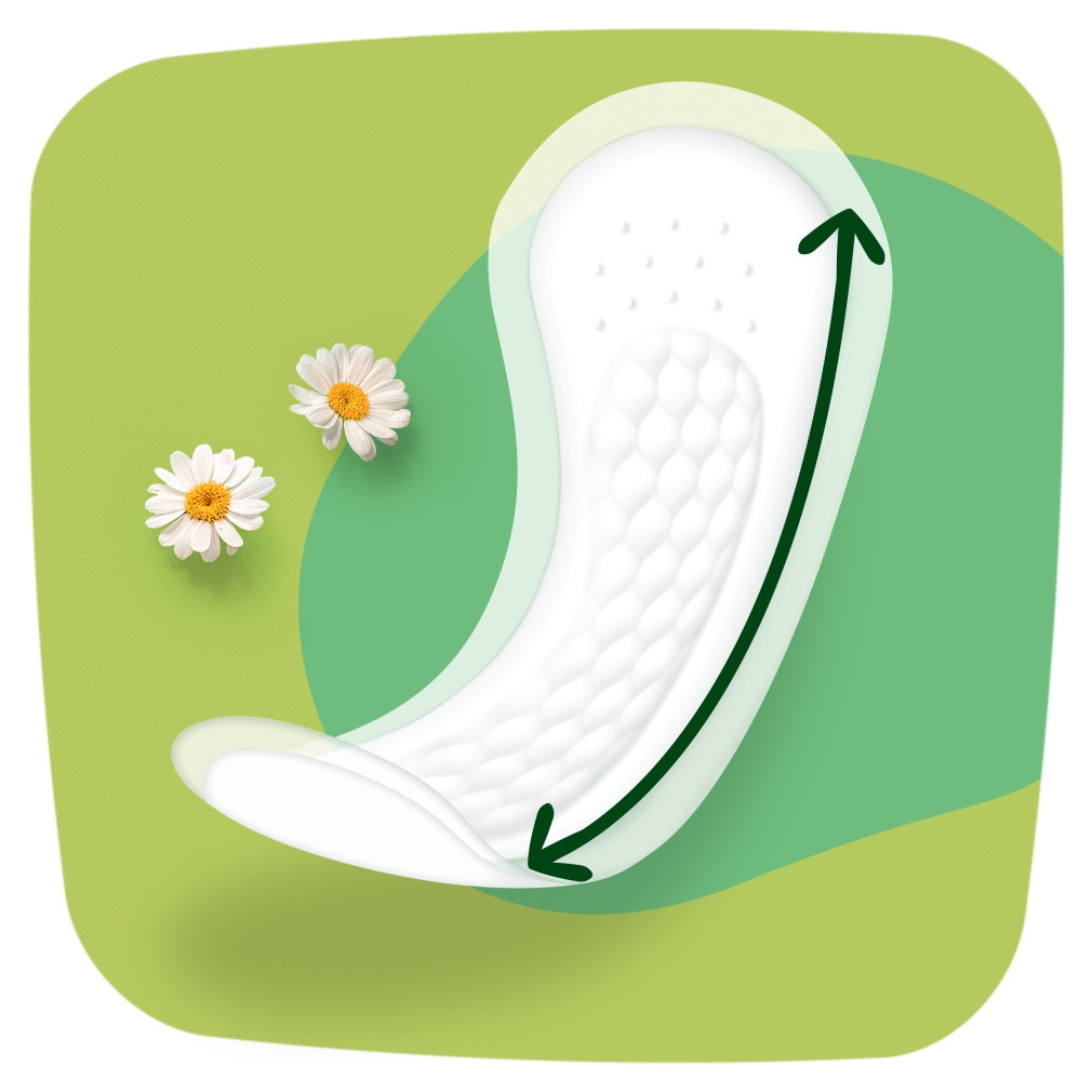 • A Secure fit technológiának és a tetszőlegesen beigazítható tapadócsíkoknak köszönhetően a tisztasági betét a helyén marad.