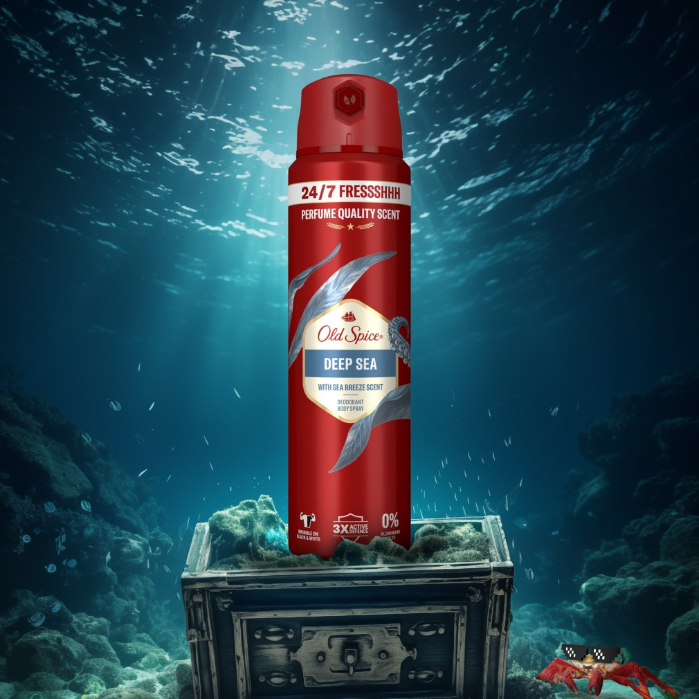 Élvezd az Old Spice Deep Sea deo spray megállíthatatlan frissességet* és magabiztosságot sugárzó illatát. A gondtalan frissesség ezen fokán végre fontosabb feladatokra is koncentrálhatsz: például menő szerződéseket köthetsz, vagy beszélni taníthatod a halakat. Engedd szabadjára a 3x-os aktív védelmet: Tartós illat, védelem a szagok ellen, szagmegszüntetés így éjjel-nappal legendásan illatozhatsz* A tengeri szellőt, a pompás virágokat és a lédús citrust idéző friss illat egy igazi víz alatti Paradicsomba visz Ja, és azt említettük már, hogy 0% alumíniumsót tartalmaz, és úgy nyújt védelmet, hogy a fekete vagy fehér ruhákon sem hagy nyomot? Mert pontosan ezt teszi. *Mindennapos használat esetén.