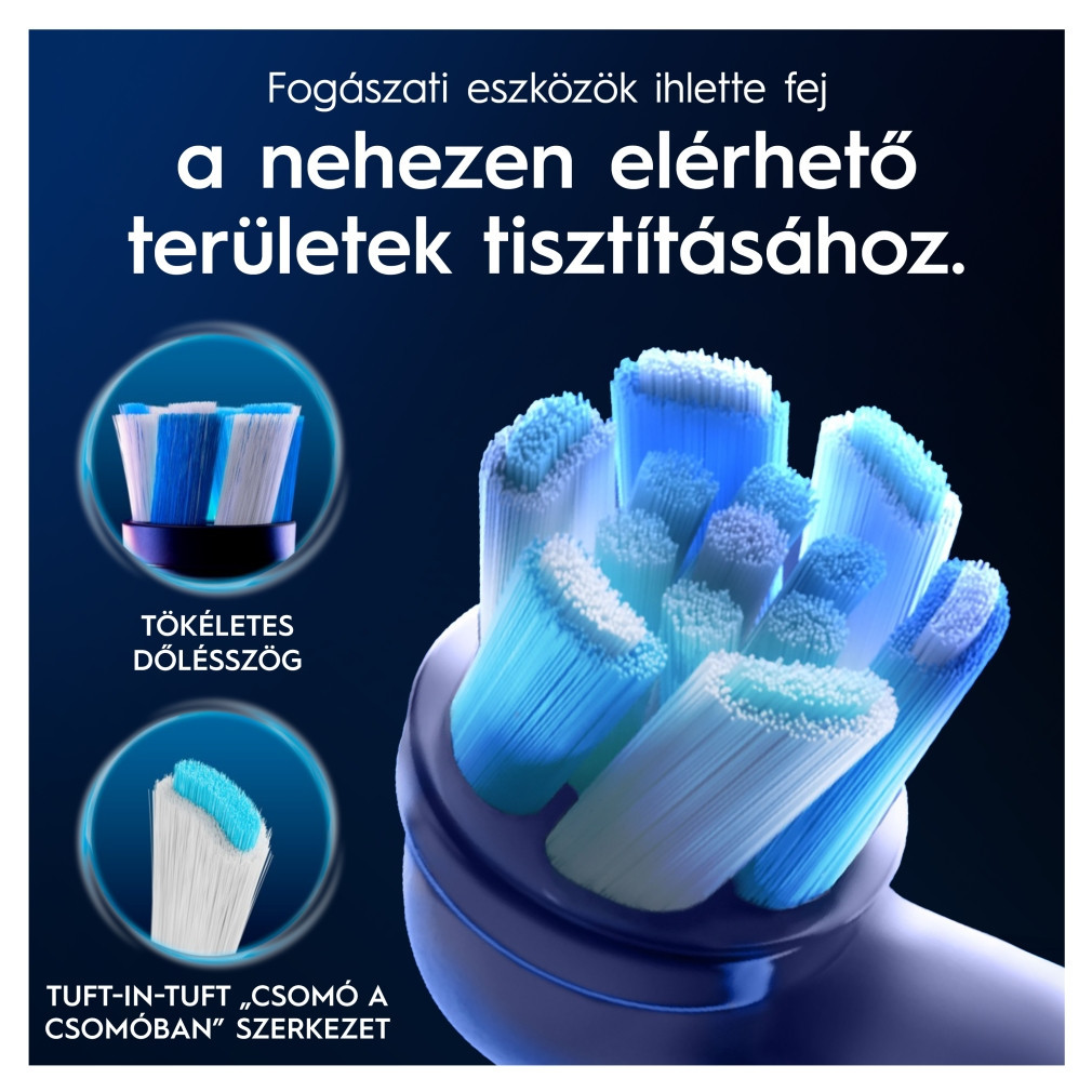 • KIMAGASLÓ LEPEDÉKELTÁVOLÍTÁS: Az elektromos fogkefefej tökéletes dőlésszögben kialakított sörtéi hatékonyan, mégis gyengéden képesek akár 100%-kal több lepedéket eltávolítani az ínyszél mentén, mint az Oral-B manuális fogkefék.