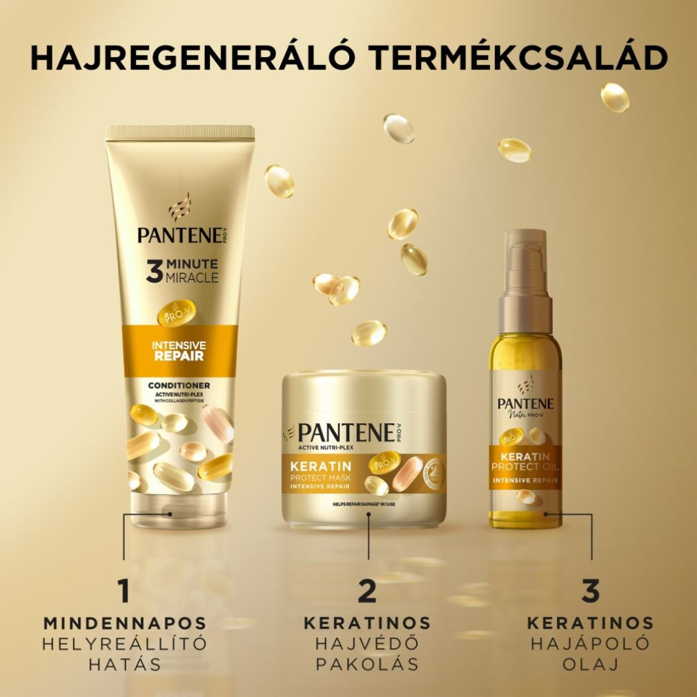 Fedezze fel az Intensive Pantene Inifnitely Long Keratin Protect hajpakolást, amely klinikailag bizonyítottan segít helyreállítani*** a károsodott hajvégeket már egyetlen használattal. Mikrotápanyagokkal kifejlesztve és a Svájci Vitaminintézet által tesztelve. A PRO-V formulával és ACTIVE NUTRI-PLEX technológiával megerősített, akár 50%-kal több kötésvédő hatóanyaggal* dúsított formula gondoskodik arról, hogy a száraz,károsodott haj mélyen táplált legyen a hajtövektől a hajvégekig. Tapasztalja meg a hajvégekig egészséges kinézetű, erősebb tapintású hajat**, még ha az töredezett is. *A korábbi formulához képest **Erő a hajformázás okozta károsodásokkal szemben. ***Hajfelületi károsodások