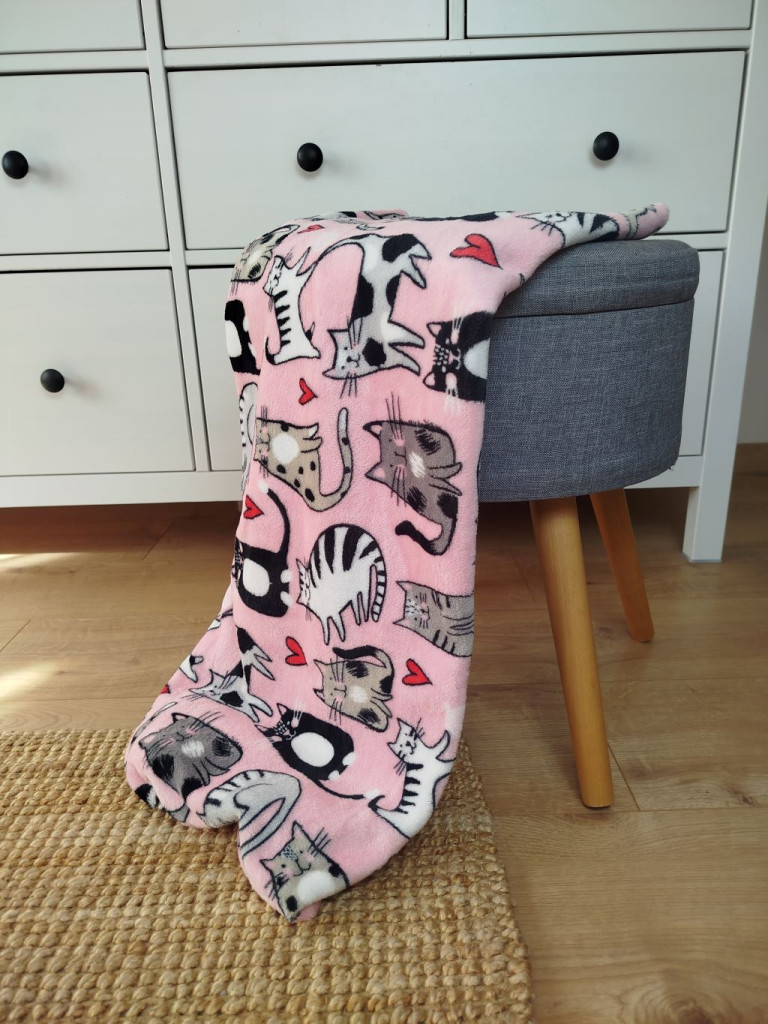 Pihe Puha babatakaró plüss anyagból - cica minta (75x120 cm)