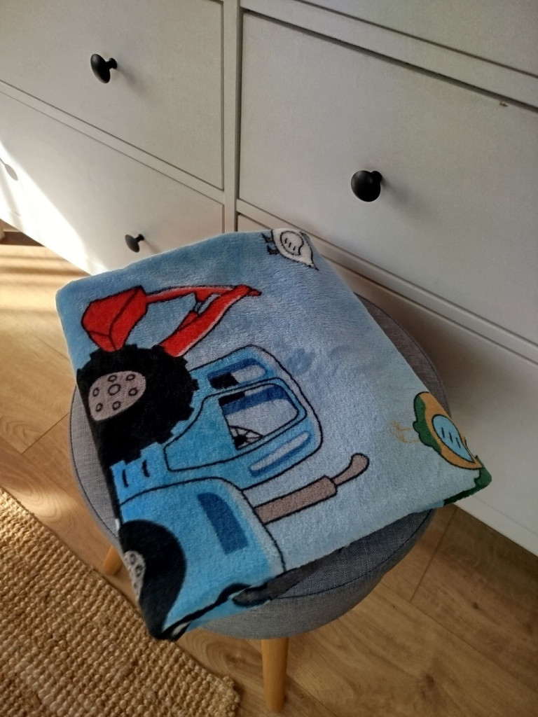 Vélemények Pihe Puha babatakaró plüss anyagból - tehén + traktor minta (75x120 cm)