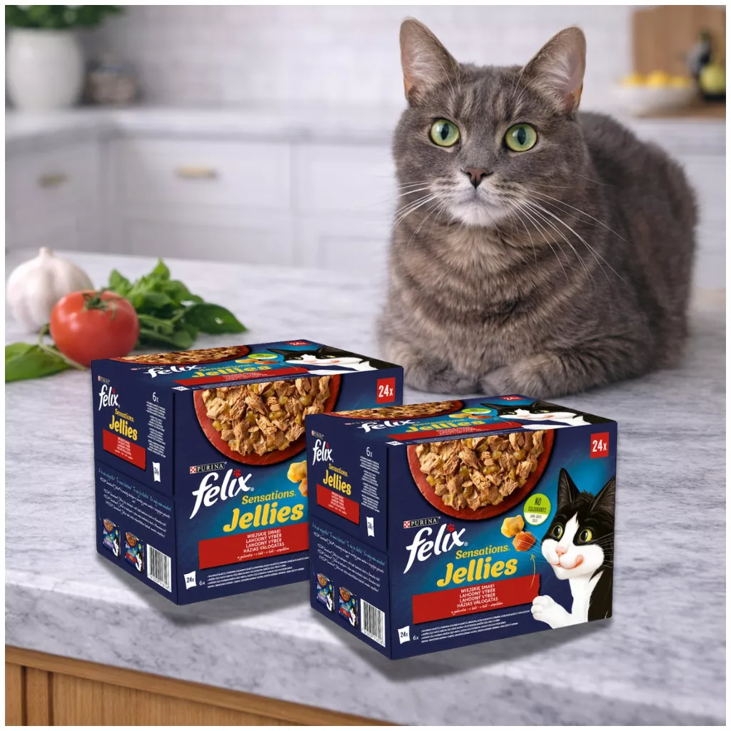 Vélemények Purina Felix Sensations Jellies alutasakos macskaeledel házias válogatás aszpikban (48x85 g)