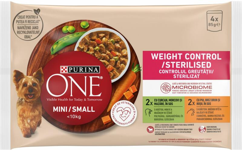 Vélemények Purina One Mini Weight Control/Steril alutasakos kutyaeledel pulykával és csirkével (4x85 g)