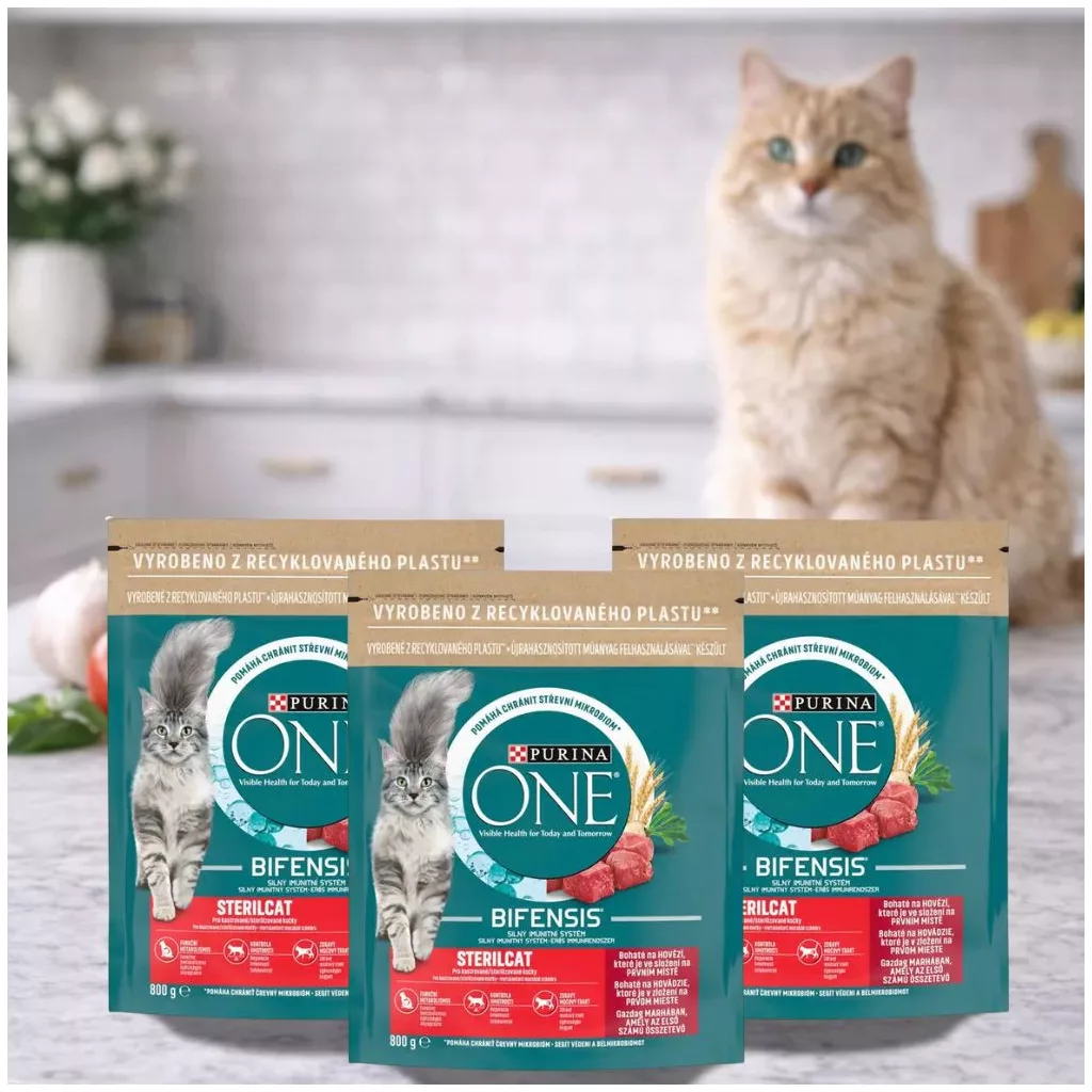 Purina One Sterilcat száraz macskaeledel marhával (3x800 g)