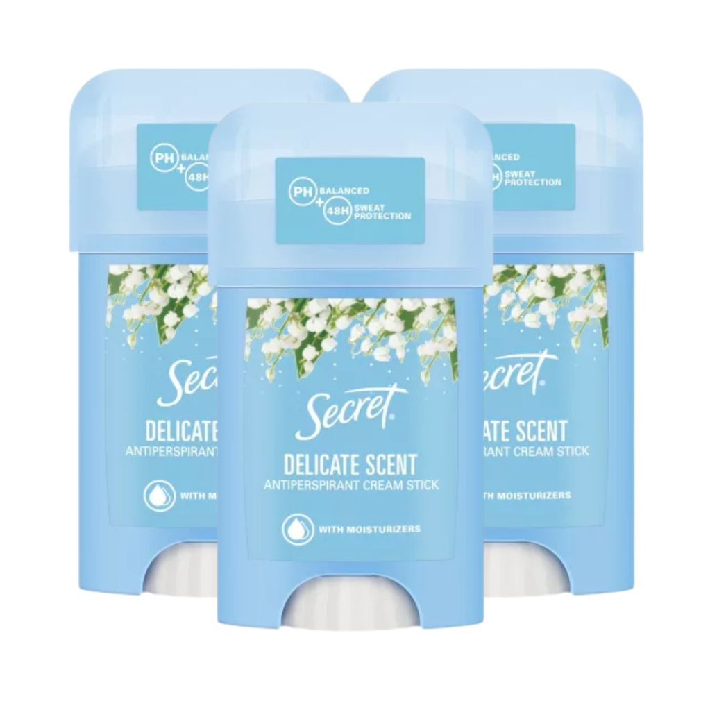 • A pH-semleges, valamint hidratáló hatóanyagokat tartalmazó Secret Delicate izzadásgátló krémstift segít megőrizni bőröd simaságát és frissességét akár 48 órán át.