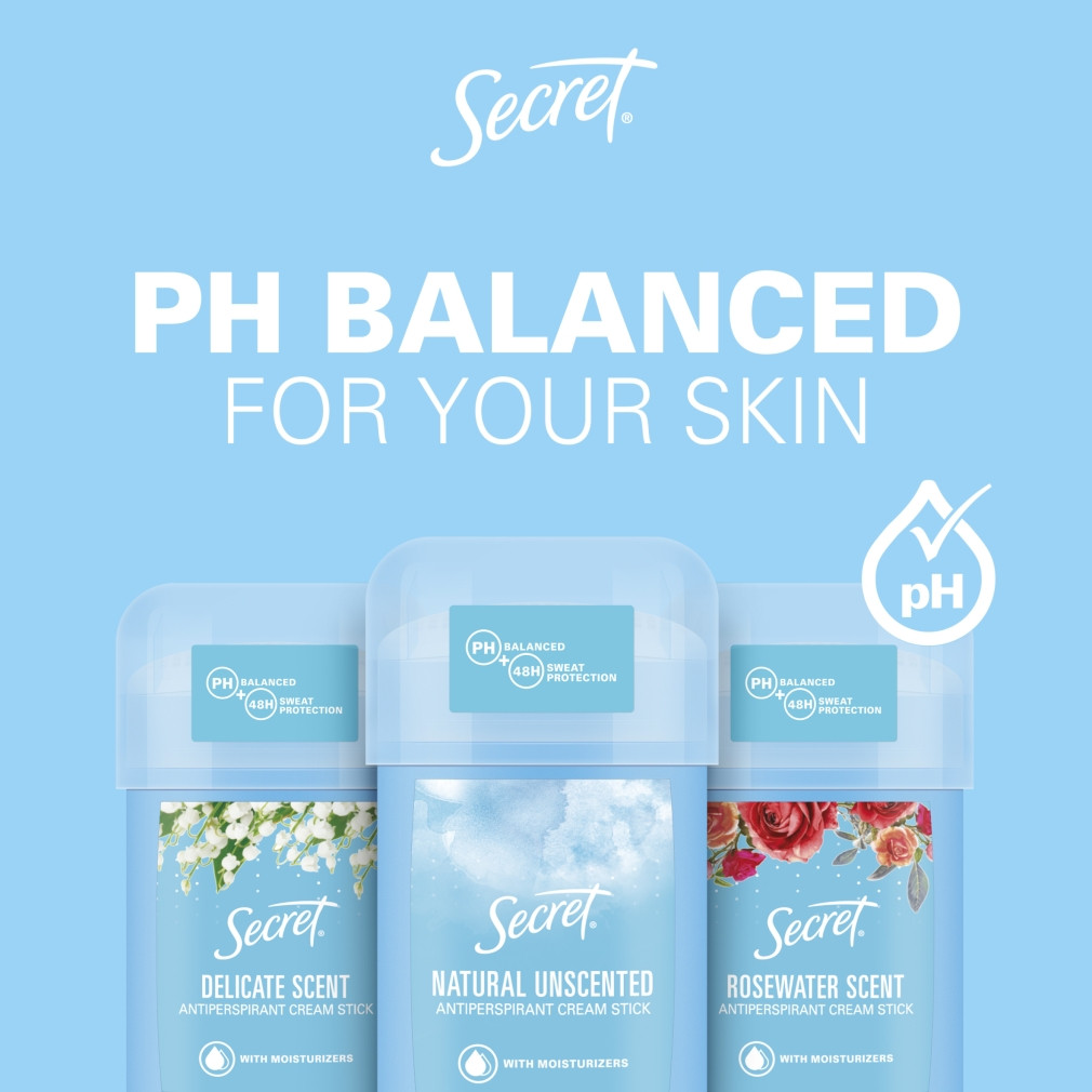 • Maradj száraz, testszagoktól mentes és feltartóztathatatlanul friss a Secret izzadásgátló krémstift dezodorral.