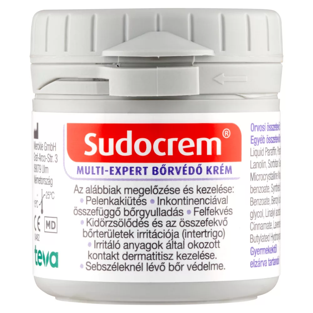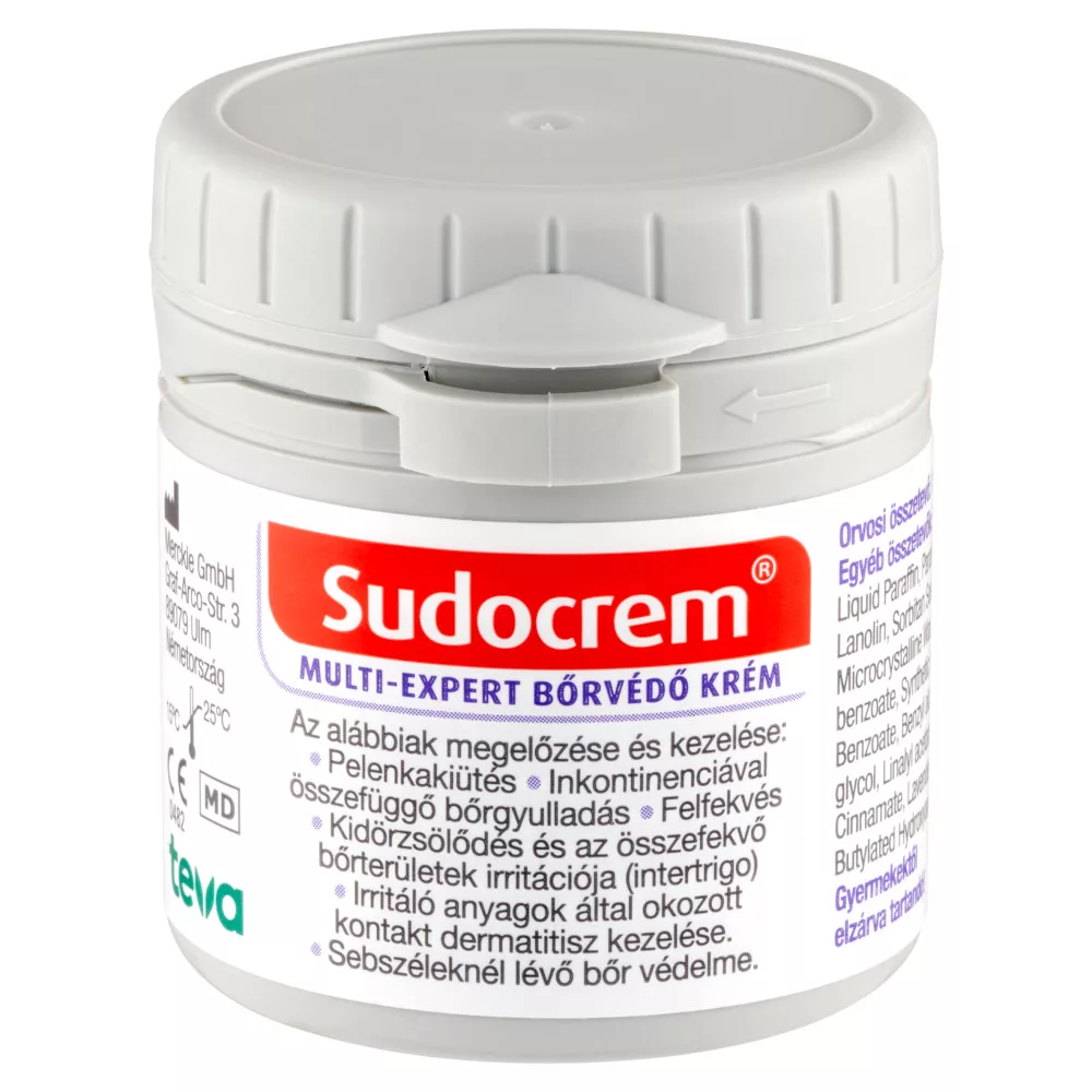 Zavarja, hogy bőre érzékeny és irritált? A Sudocrem Multi-Expert védőkrém az egész család megbízható védelmezője: gyógyítja a kisbabák pelenkakiütéseit, a nagyobb gyerekek és felnőttek horzsolások és karcolások gyógyítására használhatják, valamint megoldja a felfekvések vagy inkontinencia okozta bőrproblémákat is.