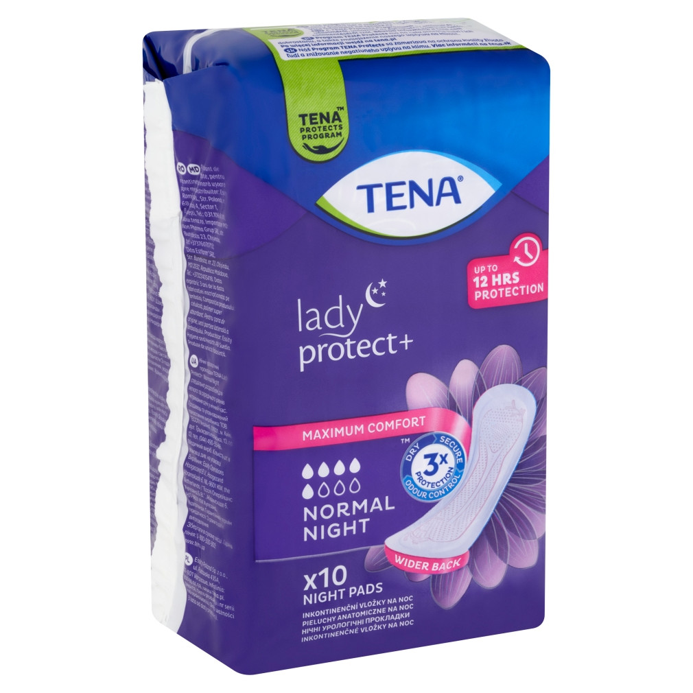 A TENA Lady Protect+ Normal Night tökéletes választás középsúlyos vizelettartási problémával élő hölgyeknek éjszakai inkontinenciabetétként. Megnyugtató hármas védelem a szivárgás, a kellemetlen szagok és a nedvesség ellen. A termék nagyfokú nedvszívó képessége biztosítja, hogy a nedvesség gyorsan távozzon a bőrfelületről, így a betét 12 órán át száraz érzést nyújt, a továbbfejlesztett mikrogyöngyök pedig megkötik a kellemetlen szagokat. Így Ön magabiztosan és nyugodtan, abban a tudatban térhet nyugovóra, hogy egész éjjel biztonságban lesz. A TENA Lady Protect+ Normal Night emellett extra hosszú kivitelben, szélesebb hátsó résszel készül, hogy fekvő helyzetben is védelmet biztosítson. Puha, légáteresztő anyaga hozzájárul a maximális kényelemhez így Ön zavartalanul alhatja végig az éjszakát.