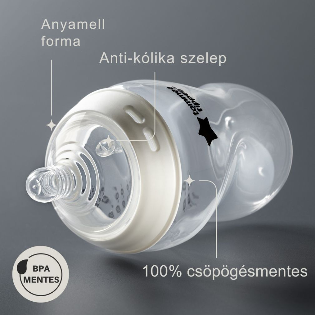 Hasfájás-megelőző szelep: hatékonyan csökkenti a túlzott levegőáramlást, így a csöppség több folyadékot és kevesebb levegőt nyel.