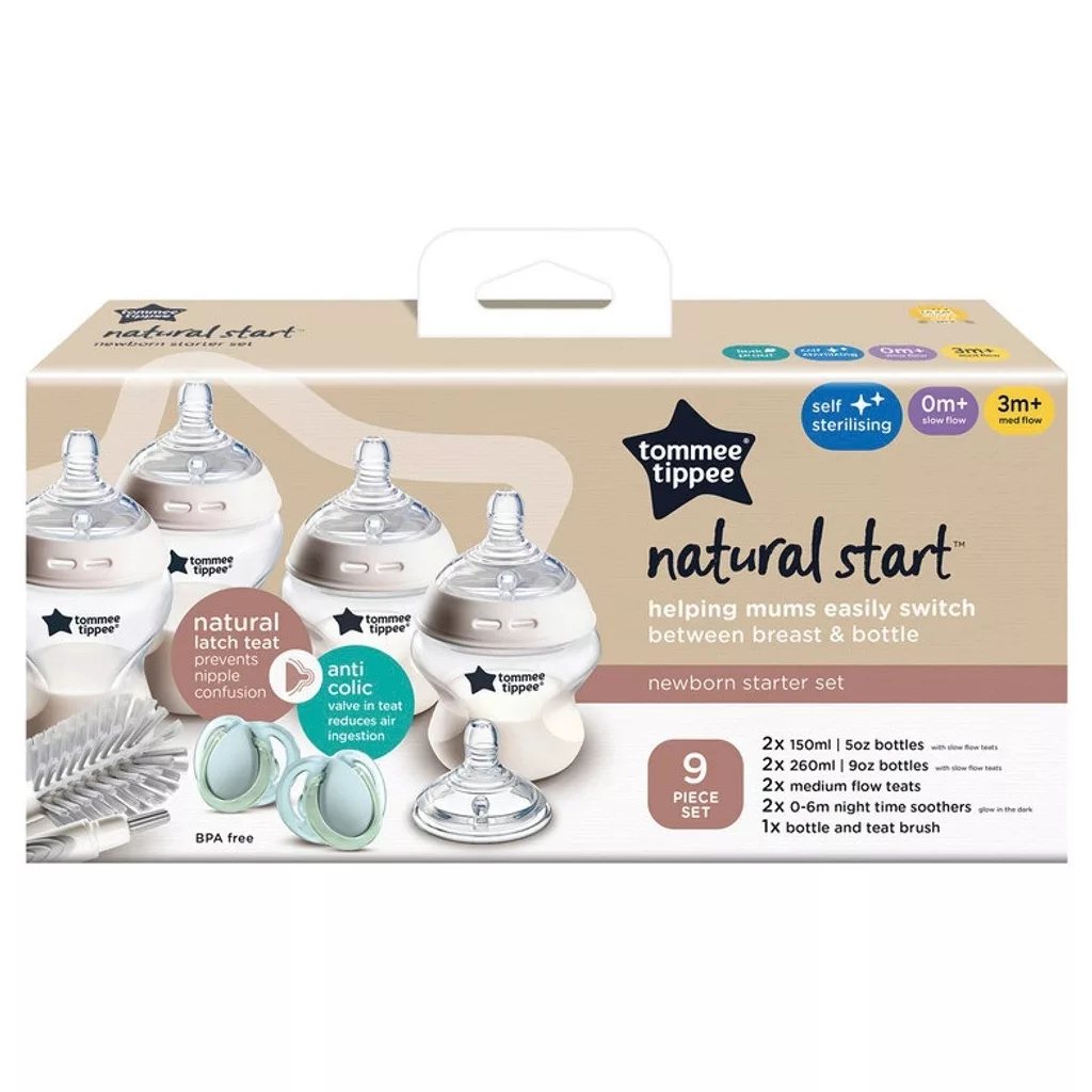 Ez a praktikus kezdőszett kifejezetten a hasfájós csecsemőknek készült. Hatékonyan csökkenti a levegőnyelés tüneteit, használatával kevesebb hasfájás, felfúvódás, sírás, több mosoly és nyugalom jellemzi majd az első hónapokat. A szett tartalmazza azokat a Tommee Tippee cumisüvegeket, etetőcumikat, nyugtatócumikat és cumisüveg mosó kefét, amire az első pár hétben szüksége lesz az édesanyának, hogy a kisbabát nyugodtan és magabiztosan tudja cumisüvegből táplálni.