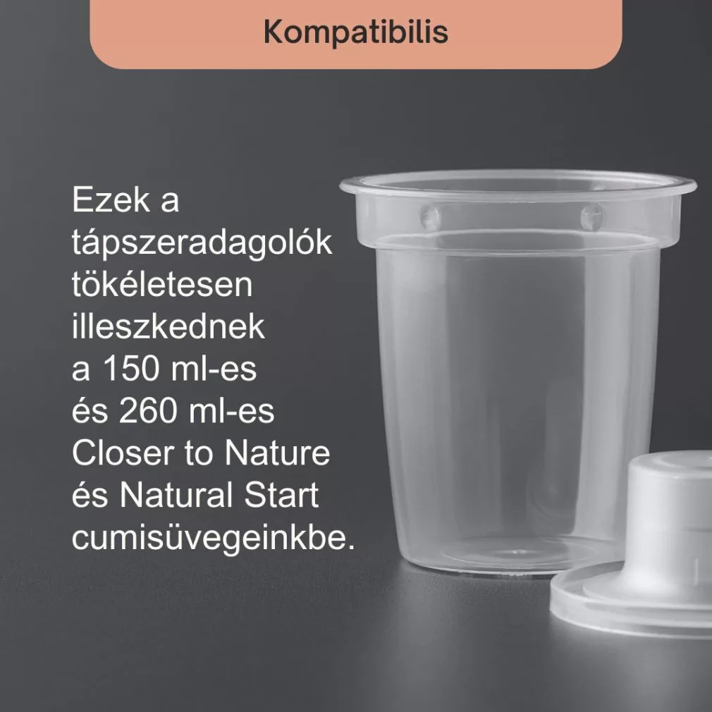 Biztonságosan, higiénikusan és szárazon tartja a tápszert. A Closer to Nature cumisüveg belsejébe is beilleszthető, így nem foglal külön helyet, nem igényel plusz odafigyelést. Használatával a szükséges tápszer mennyiség akár előre is kiadagolható, ha útközben jön el az etetés ideje, már nem kell a tápszert kanalazgatni és számolni, vagy akár előre elkeverni a vízzel.