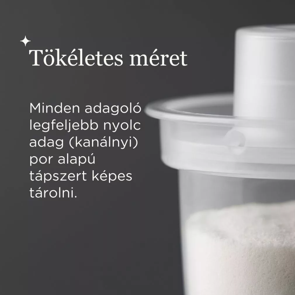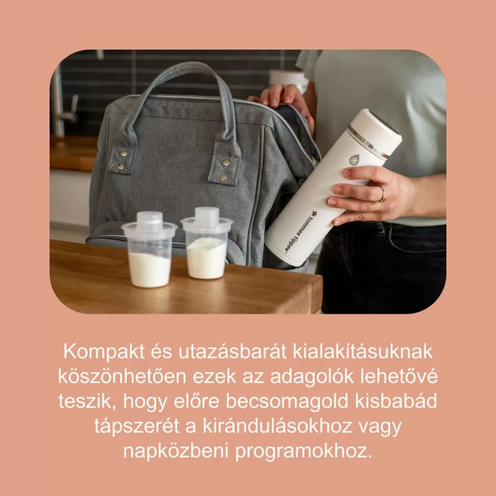• A szükséges tápszer akár előre is kiadagolható, így útközben könnyebb az ételt elkészíteni