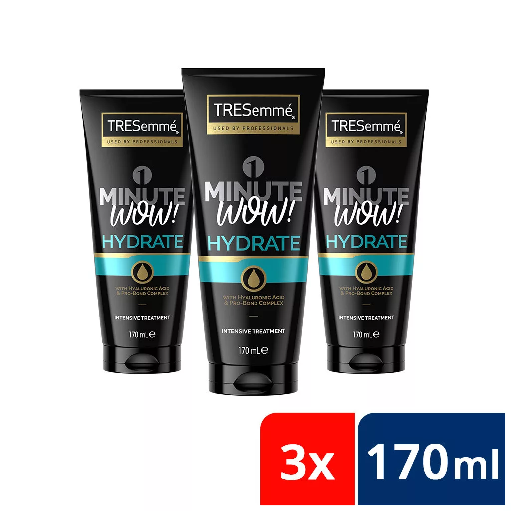 A TRESemmé Hydrate&Purify 1 Perces Intenzív Hajpakolás koncentrált formulája hialuronsavat tartalmaz, szabadalmaztatott Pro-Bond Complex technológiája a hajszálak belsejébe hatol és segít megerősíteni a haj szerkezetét, hidratált és fényes hajat kölcsönözve.