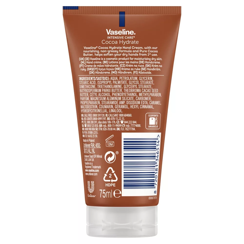 A Vaseline Cocoa Radiant kézkrém tiszta kakaóvajjal segít helyreállítani a bőr nedvességtartalmát. Hidratáló formulája akár már az első használattól puhítja a bőrt, gyorsan felszívódik, és nem hagy zsíros érzetet a bőrön.