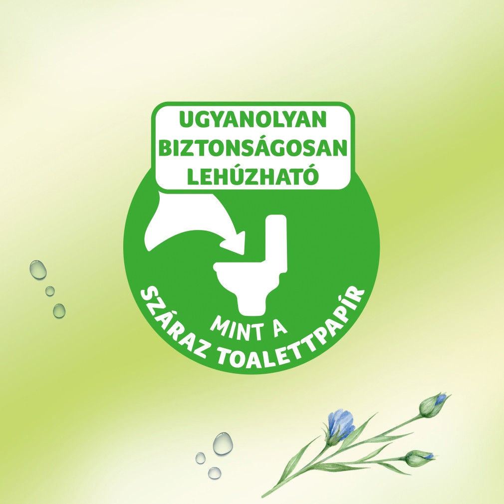 A toaletten lehúzható, akárcsak a száraz toalettpapír. Az optimális lehúzhatóság érdekében javasoljuk, hogy egyszerre két lapnál többet ne dobjon a toalettbe.